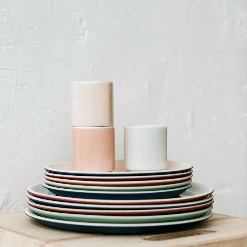Collection urbaine, joyeusement dans son époque. Fraîche et spontanée, à l'humeur créative. Quand la couleur s'attable, joueuse. Impertinente liberté pour réveiller nos basiques. Des duos de couleurs : dialogue des contrastes et des matières. Formes easy life, empilables, multi-fonctions. Lignes à la sobriété assumée, sans fioritures. Gaieté des couleurs. Contraste innovant d'un extérieur mat coloré d'assiette et de plat. Une indispensable modernité, au quotidien. Pulvérisé à la main.