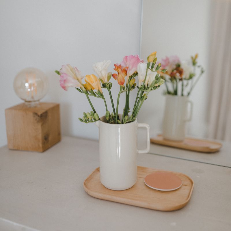 Collection urbaine, joyeusement dans son époque. Fraîche et spontanée, à l'humeur créative. Quand la couleur s'attable, joueuse. Impertinente liberté pour réveiller nos basiques. Des duos de couleurs : dialogue des contrastes et des matières. Formes easy life, empilables, multi-fonctions. Lignes à la sobriété assumée, sans fioritures. Gaieté des couleurs. Contraste innovant d'un extérieur mat coloré d'assiette et de plat. Une indispensable modernité, au quotidien. Pulvérisé à la main.