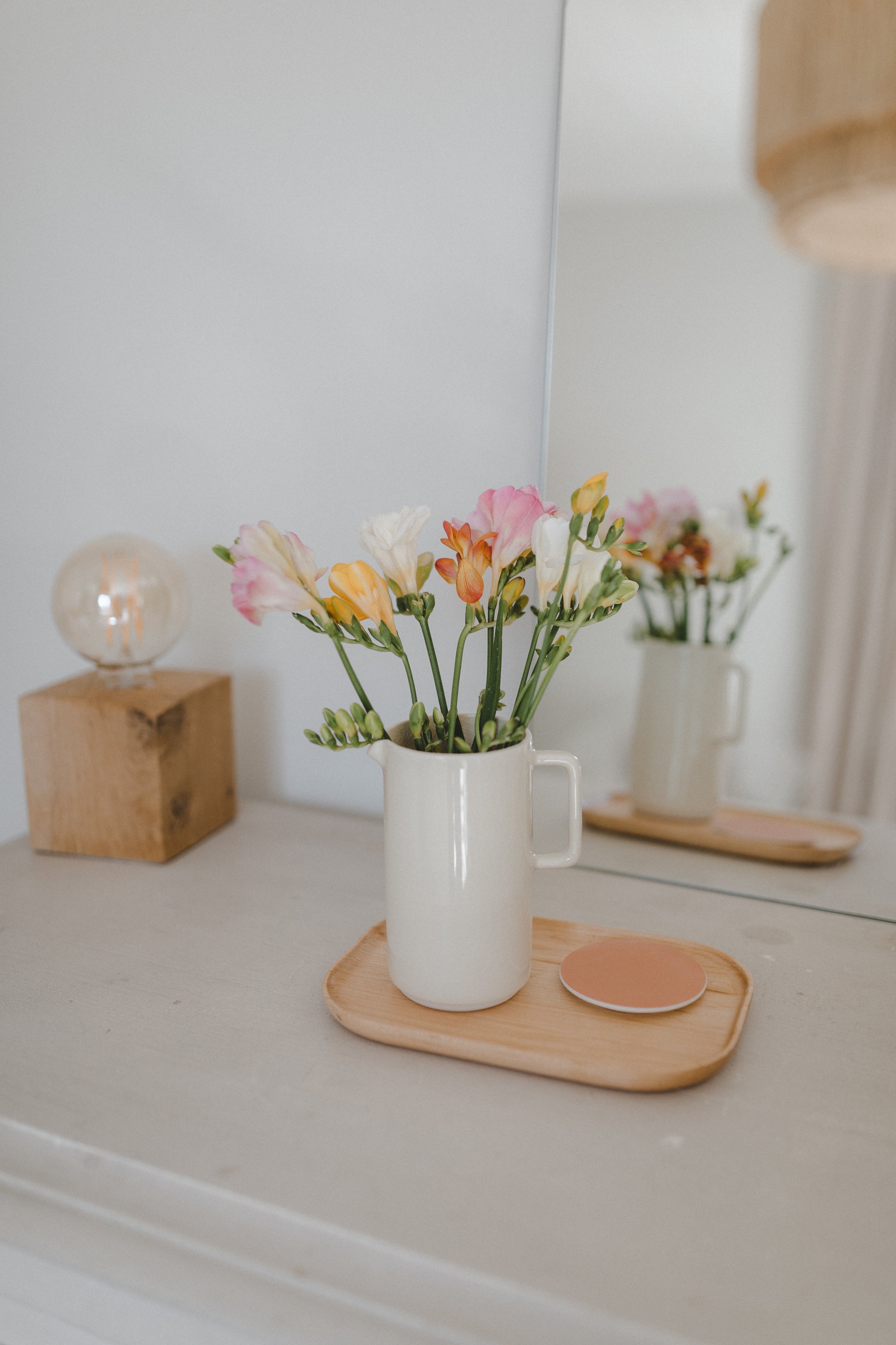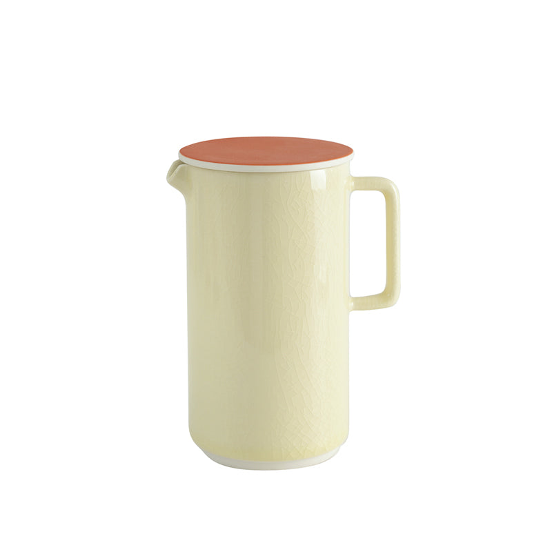 Pichet en céramique, forme empilable rehaussée par un bord blanc brut.