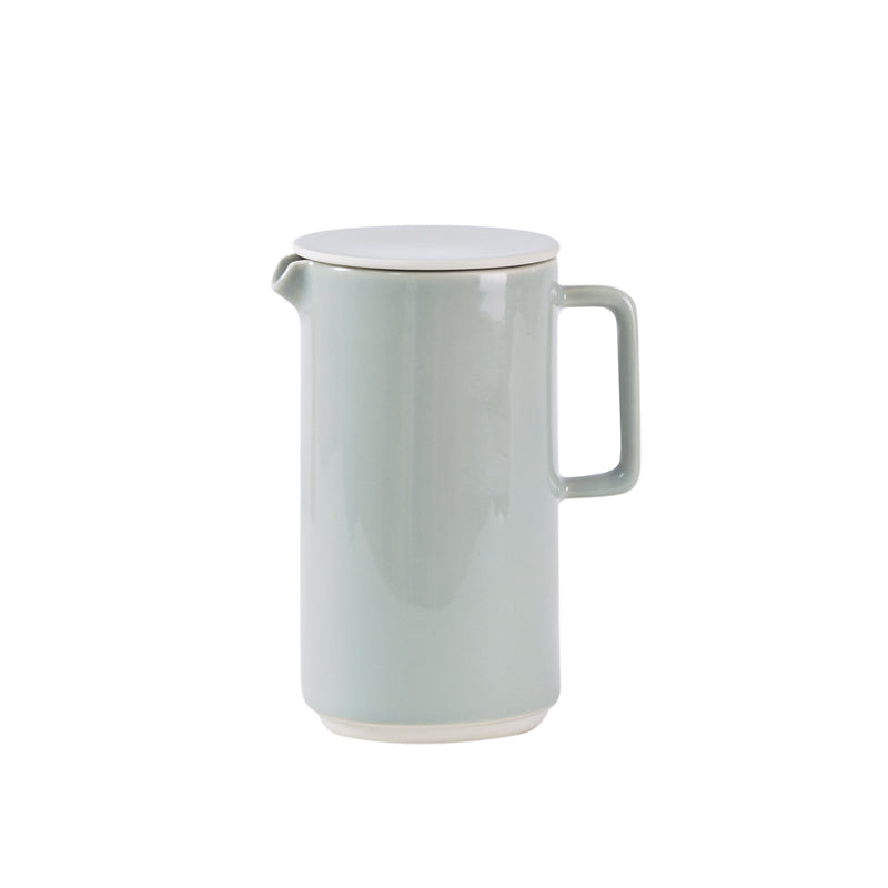 Pichet en céramique, forme empilable rehaussée par un bord blanc brut.
