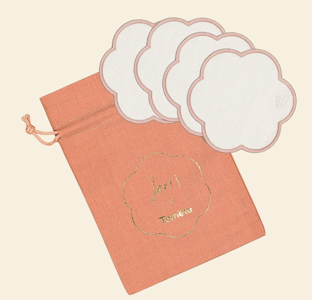 Une capsule pensée pour les fêtesPour cette fin d’année, Jars et Tomète réunissent leurs univers autour d’un coffret unique. Le petit twist ? Chaque set joue volontairement le dépareillé pour apporter une touche singulière à vos tablées.Dans ce set, vous retrouverez : 1 pichet en grès coloris vert olive, accompagné de 4 dessous de verre festonnés en lin ivoire/rose