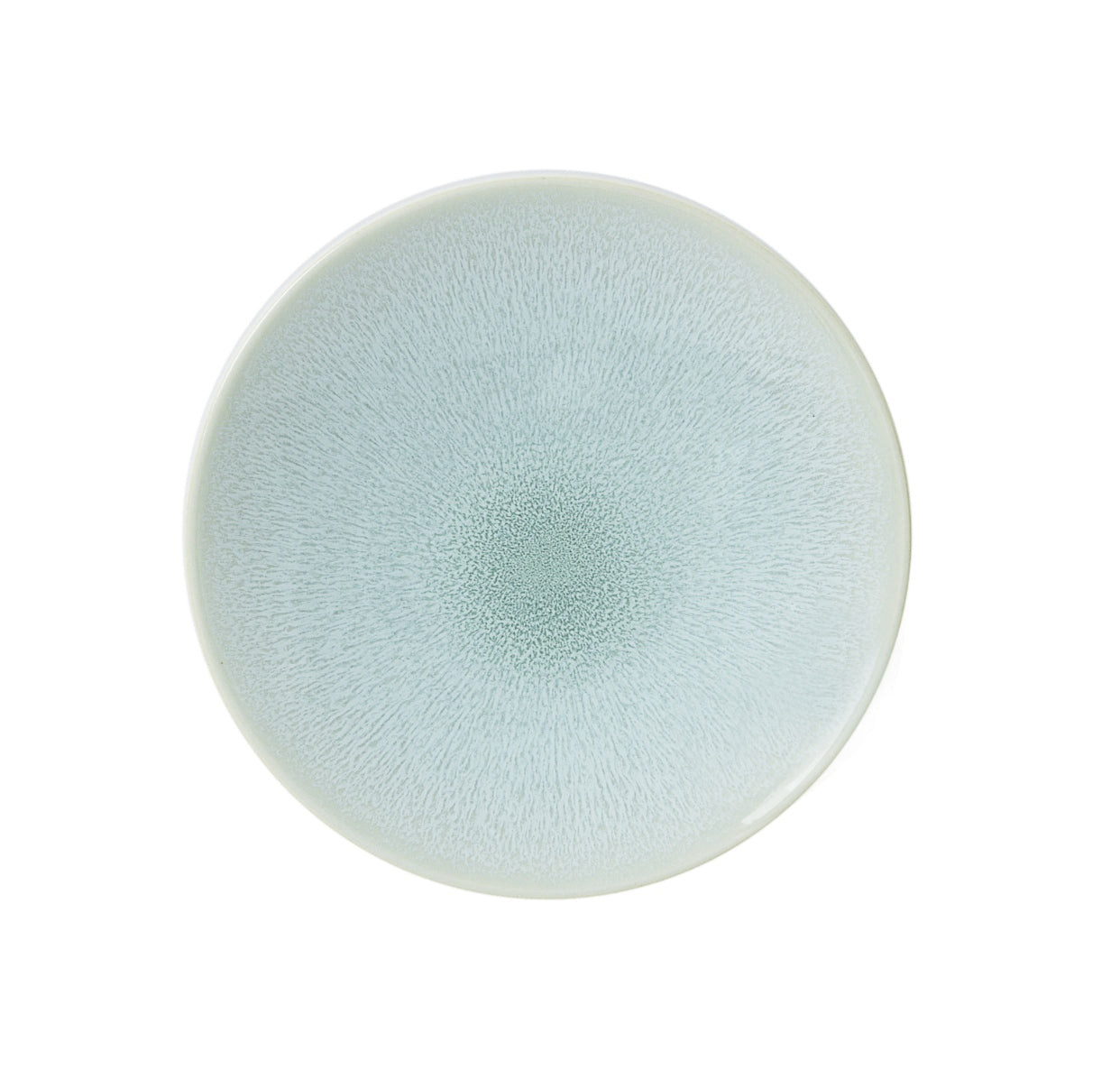 Assiette à dessert en céramique. Forme ronde et simple pour mettre en valeur la recette.